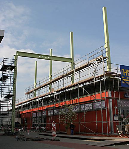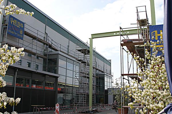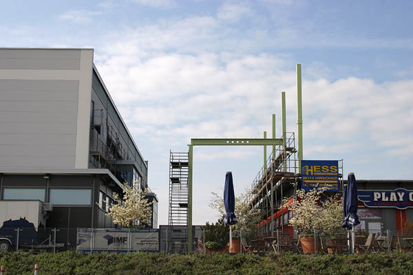 Viel ist noch nicht zu sehen von den Umbaumaßnahmen an der Jako Arena, aber die ersten Stahlträger stehen wenigstens schon.