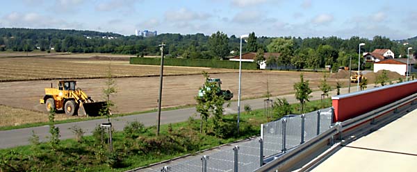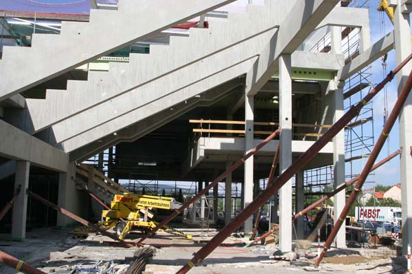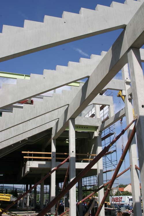 Am unteren Bildrand sieht man die Betonfertigteile, die einmal die