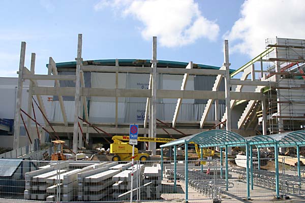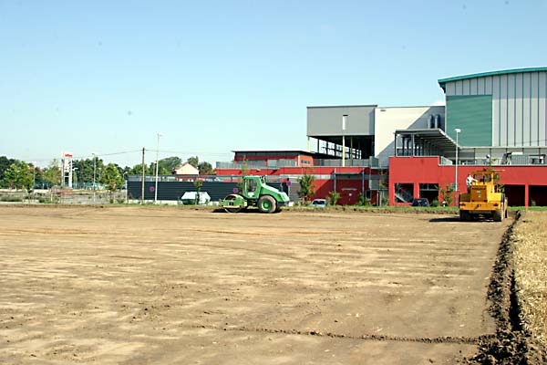 Hinter der Halle wurde mit dem Bau der neuen Parkplätze bereits begonnen
