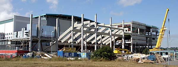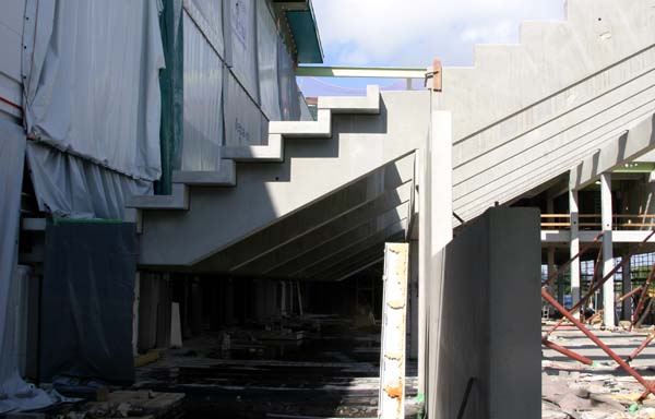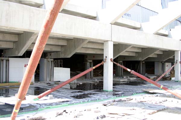 Die VIP-Logen sind schon an ihrem Platz, aber noch lange nicht fertig